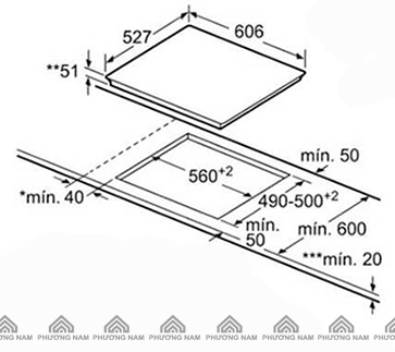 - Kích thước bếp: 592 x 522 x 51mm